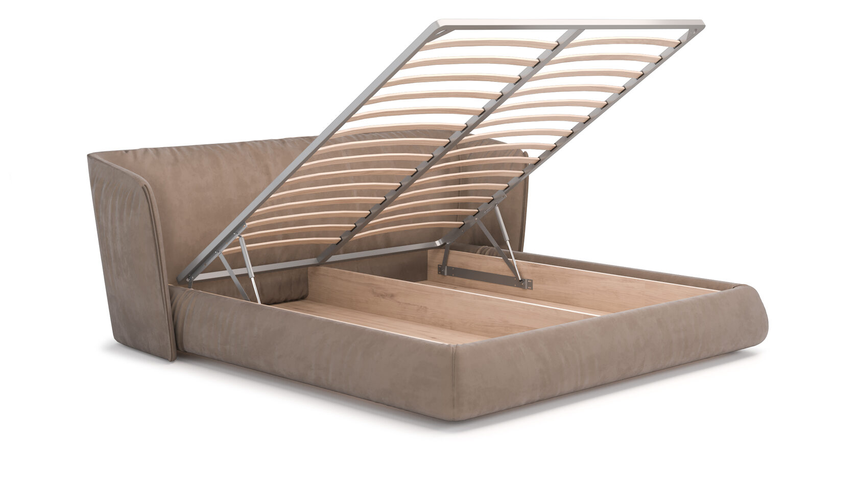 Система хранения: бельевой ящик из шлифованной фанеры под механизмом.