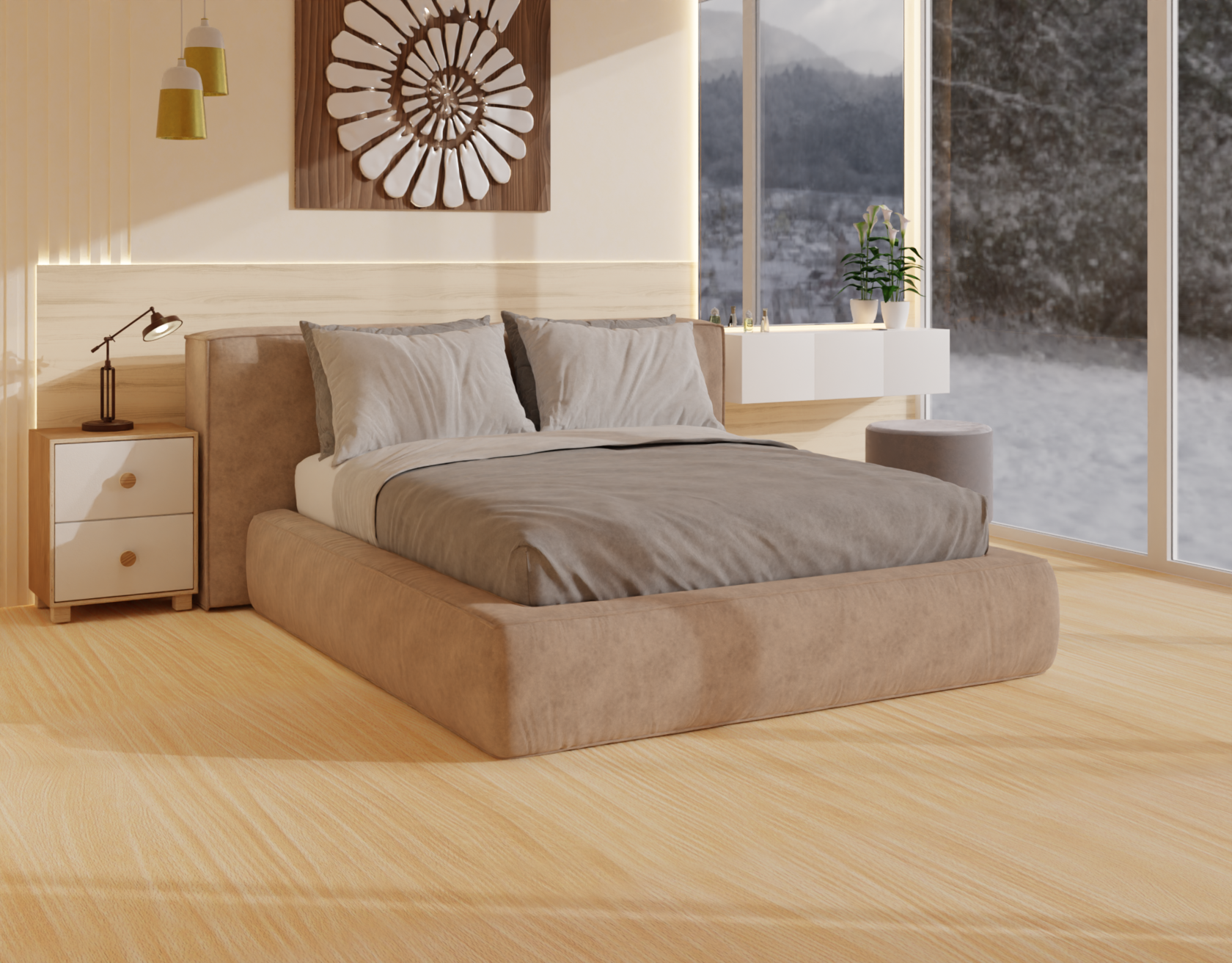 Система хранения: бельевой ящик из шлифованной фанеры под механизмом