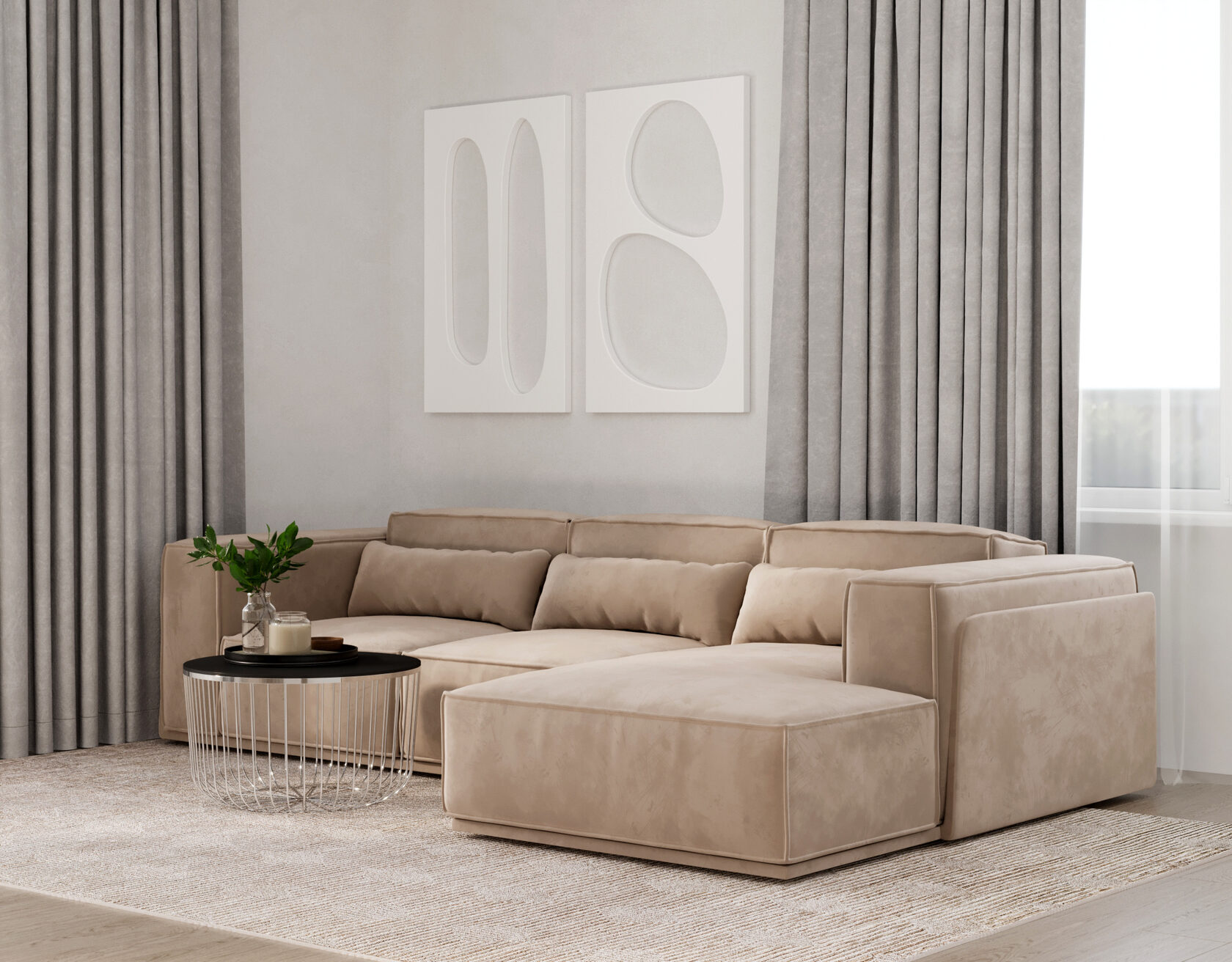 «Oasis» – Модульный угловой диван со спальным местом – в отличие от монолитной конструкции, представляет собой комбинацию отдельных частей – модулей. Они универсальны, могут использоваться по отдельности в качестве самостоятельных кресел и лежанок или объединяться в композицию. Благодаря своей оригинальности и практичности модульная мебель сегодня невероятно популярна. Ее используют в квартирах, домах и офисах, перемещая и конструируя модули в нужном для конкретного случая порядке. прекрасно дополнит интерьер гостиной комнаты.